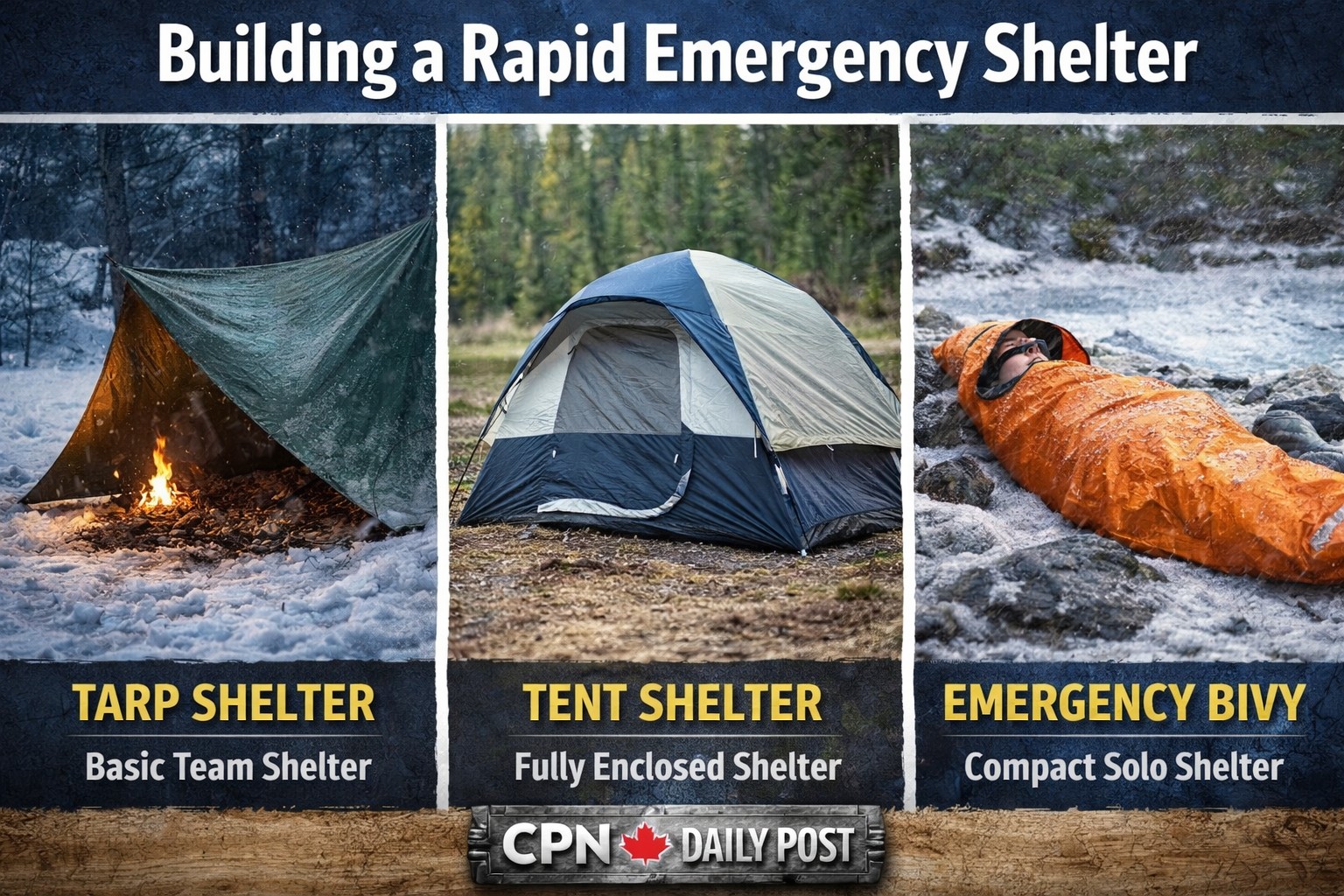 When that happens, your immediate priority becomes creating temporary shelter that protects you from the elements while you assess the situation. In Canada, exposure to wind and cold temperatures can become dangerous very quickly. Wind chill and moisture accelerate heat loss, which means shelter often becomes the first survival priority.
