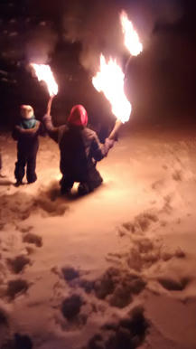 -Optional: wrap the handle end of your torch with something... the heat from the fire gets the sap running and you will get sticky.Ours did have some scrap cotton towels added and because of the very cold temps i did use a little diesel to help get them burning fast and hard.