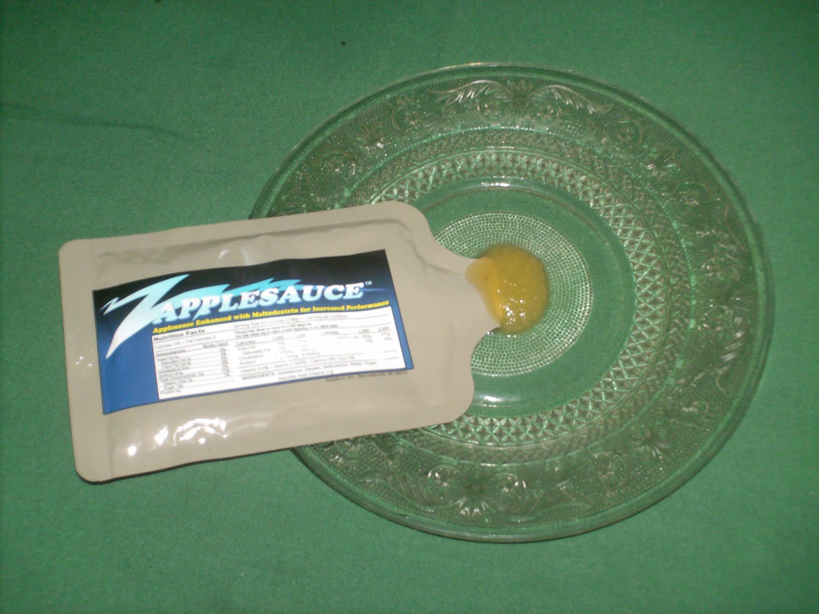 Now for a little dessert. I started with the applesauce. The foil pouch it comes in had a label touting the words “…enhanced with maltodextrin for enhanced performance”. Malto-what?