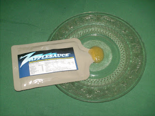 I had to look this one up to find out more. Simply put, it is vegetable or grain starch broken down into sugar that has a very high absorption rate by the body which will give you an energy boost faster than other forms of sugar. The best thing about the applesauce was the packet, designed to be eaten out of with a narrow opening. The second picture shows the portion size on a plate.